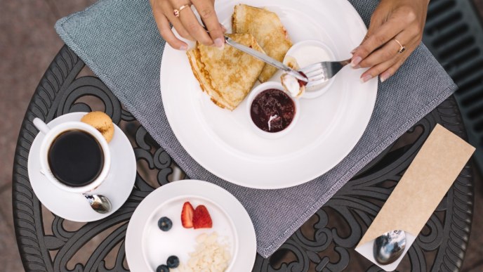Coffee Maple Crepes With Almond Crunch Overtime Cook